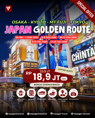 Setelah sampai di Jepang, kita akan disambut guide yang ramah, setelah itu anda akan langsung diajak untuk mengunjungi kita akan menuju Shinsaibashi Dotonbori pusat perbelanjaan di kota Osaka, dilanjutkan menuju Kyoto untuk mengunjungi Kiyomizu Temple yang merupakan kuil Budha kuno yang dibangun sejak tahun 798 dan mengalami 10 kali kerusakan akibat perang dan bencana alam. Selanjutnya kita akan menuju Kota Gifu. Check-in hotel istirahat.