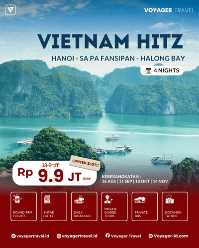 Setiba di Bandara Noi Bai, Hanoi kita disambut oleh guide berbahasa Indonesia yang ramah, Setelah itu itu kita akan berkesempatan untuk menjelajahi Hanoi Old Quarter. Setelah itu kita akan langsung menuju ke hotel
